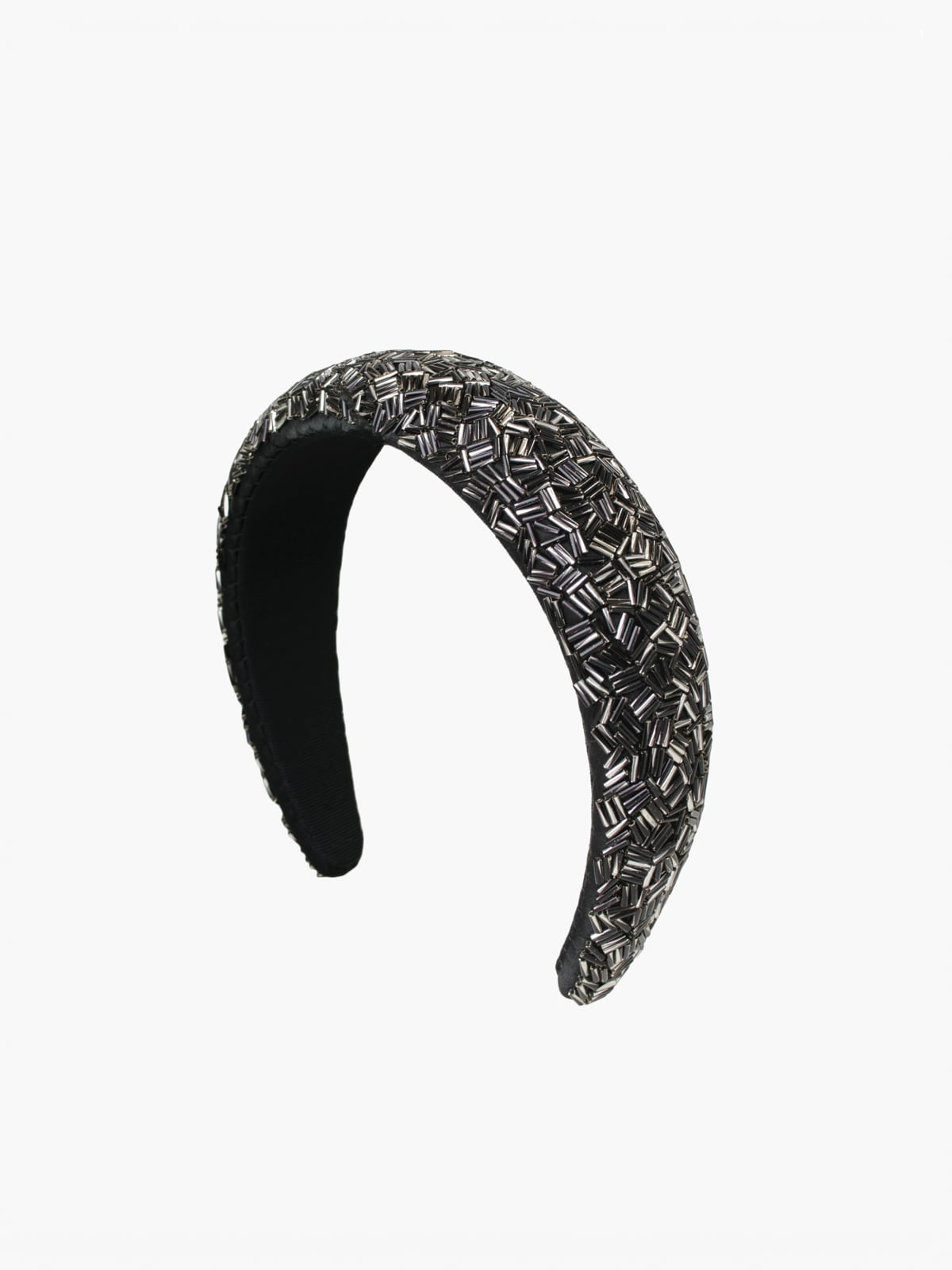 シシルクサテンの生地に約1,000個のビーズの刺繍を施したヘッドバンド。フリーサイズで、うなじにゴムで取り付けます。 アトリエで土台から全て手仕事で仕上げます。 Size:Free Headband Width : 5cm Material:Silksatin Colour : Black / Silver ご注文を頂いてから製作します。お届けまでに4~8週間かかります。オーダーメイドのため、返品はお受けできませんのでご了承ください。