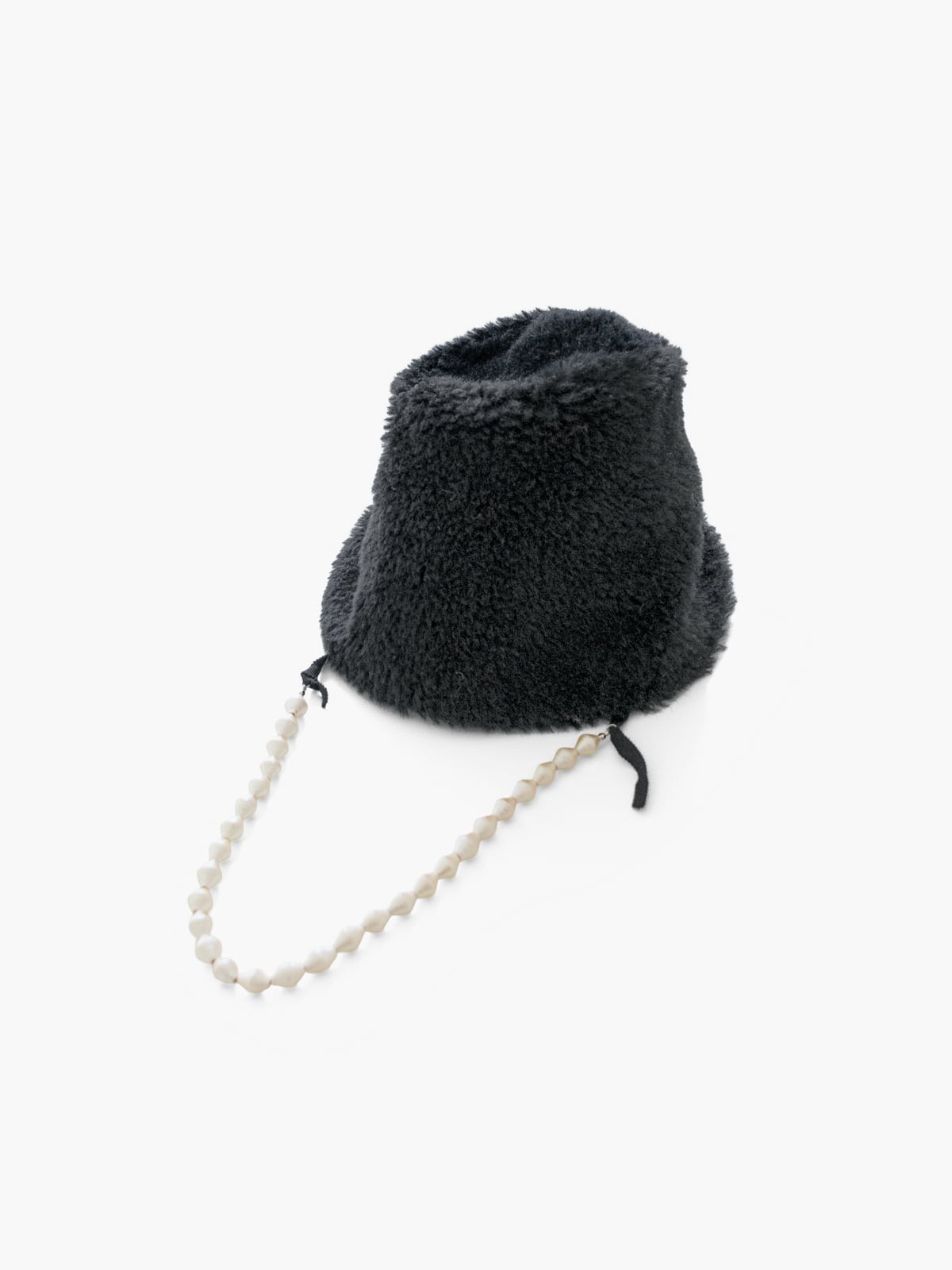 ウールのボアに、取り外しのできるコットンパールのストラップを付けました。