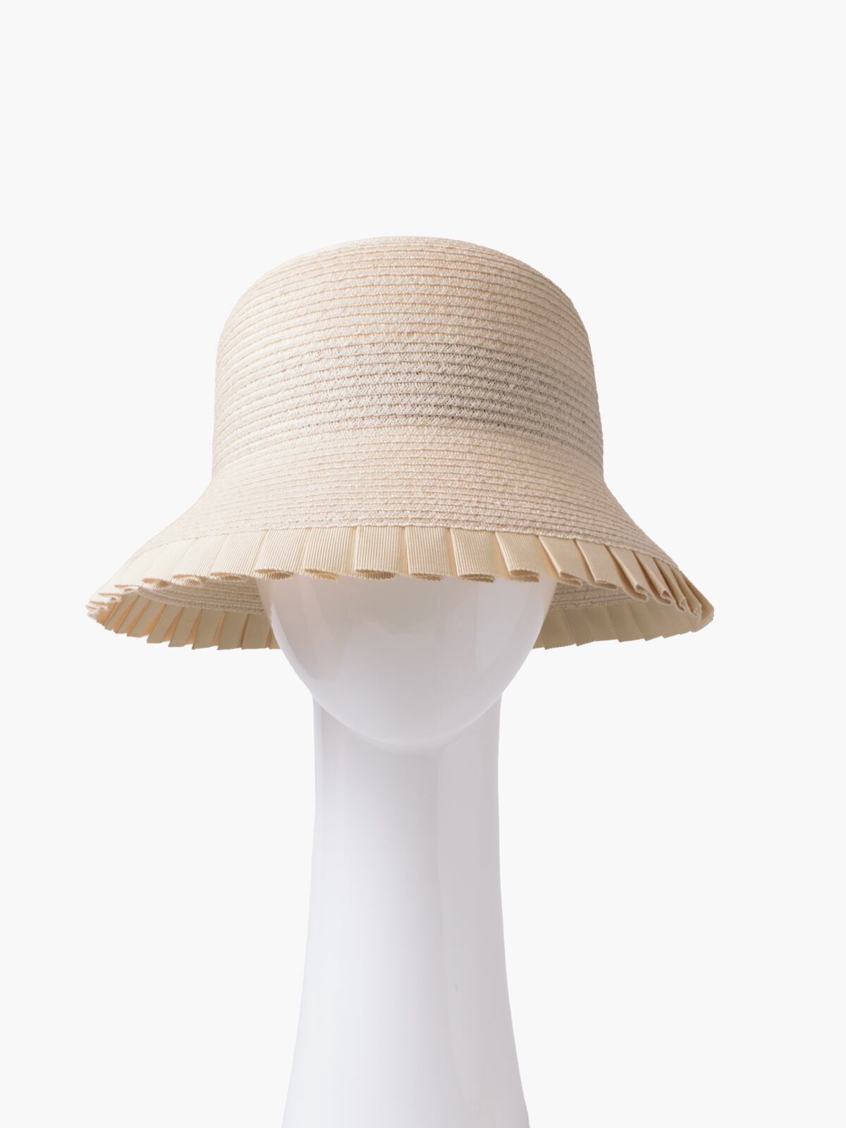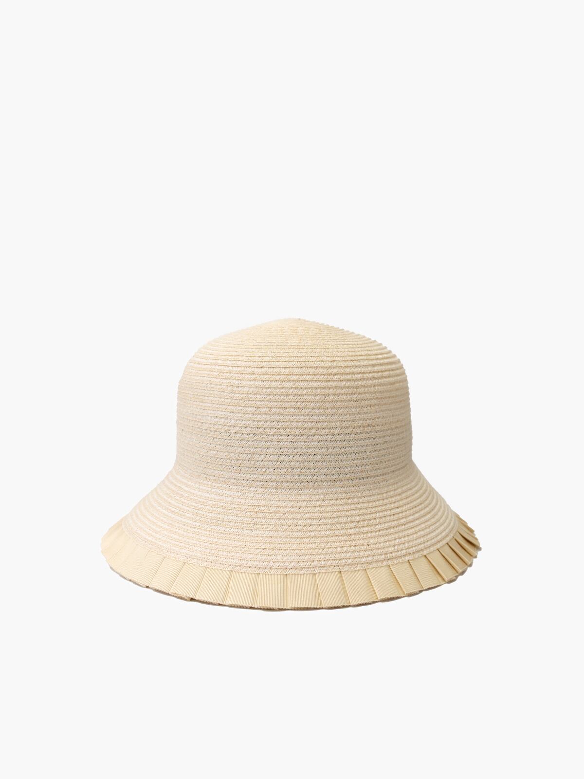 ブリムにグログランリボンのプリーツをあしらったブレードハット。シゾールブレード素材。ブリムの先端にはワイヤーが入っており、しなやかさと適度なハリを持たせています。日除けとてもお使いいただけます。